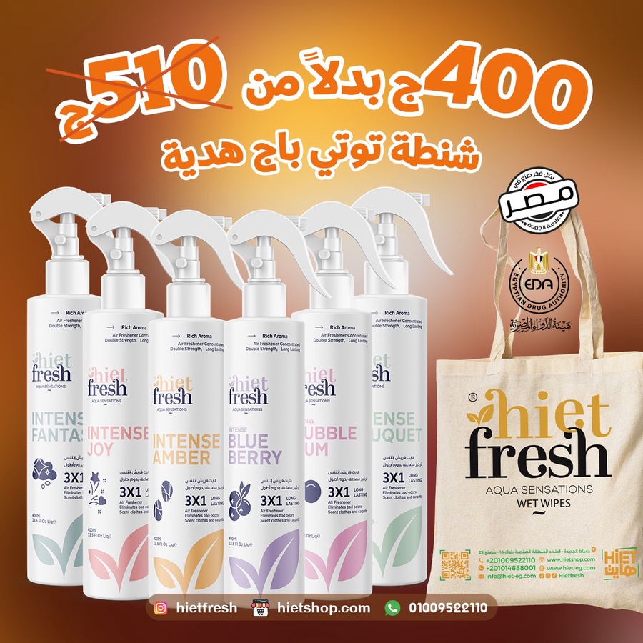 اشتري 6 عبوات معطر جو هايت فريش إنتنس تركيز الضعف تحصل علي شنطه توتي باج هايت فريش مجانا